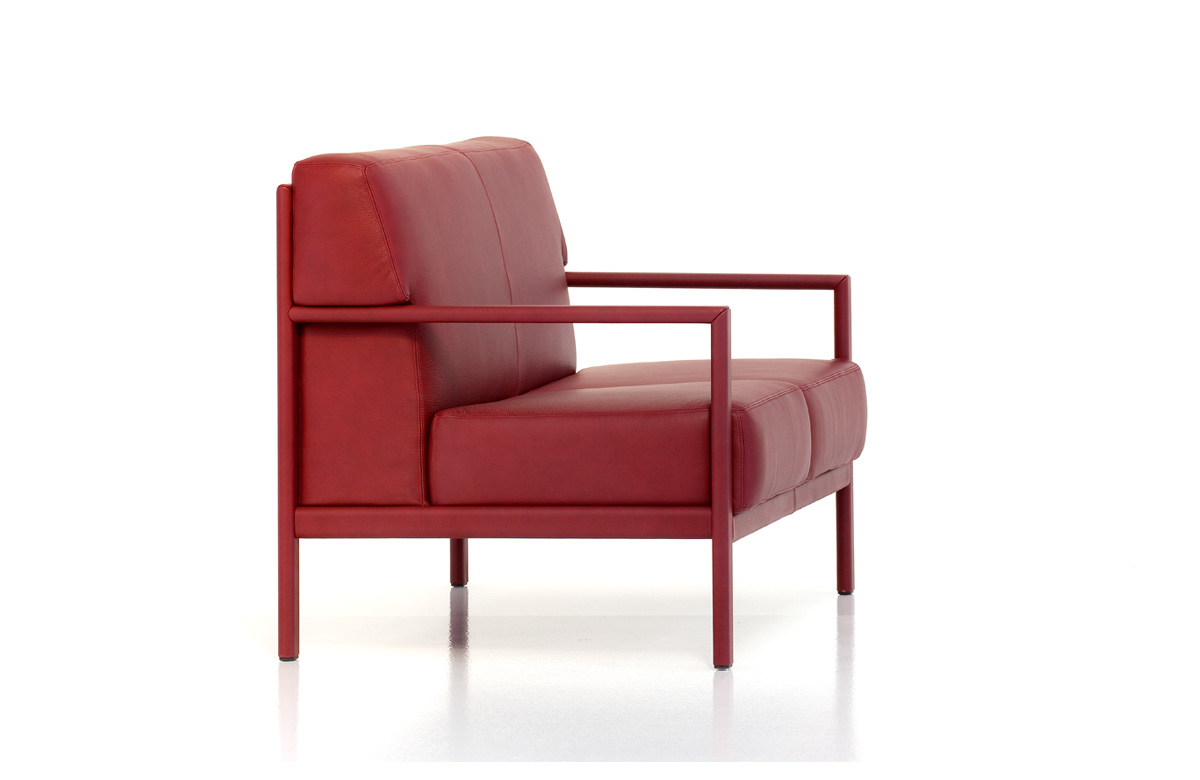 Steel structure covered in soft leather. Cushions covered in soft leather.