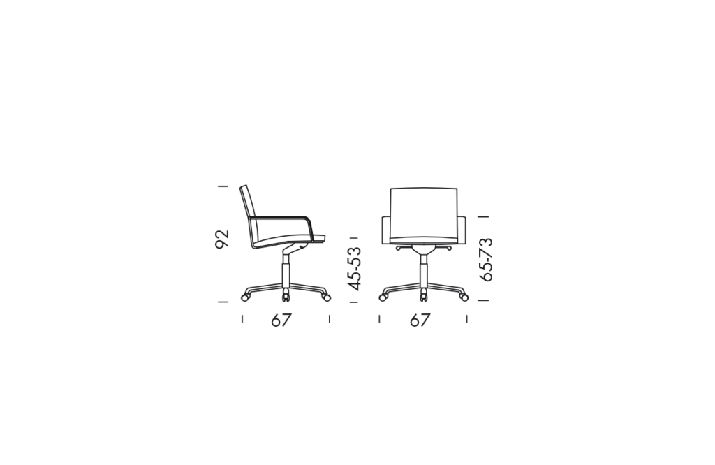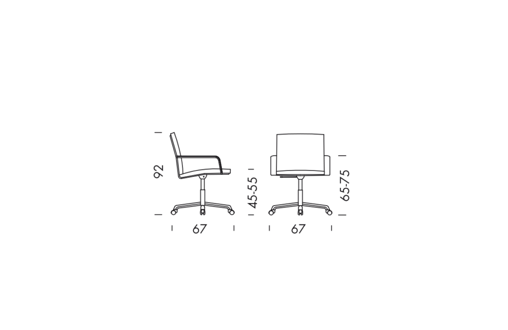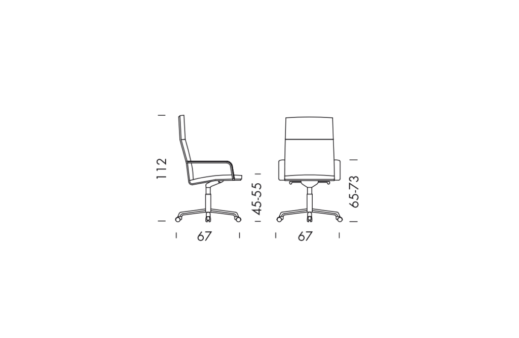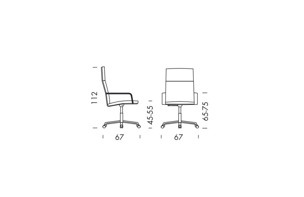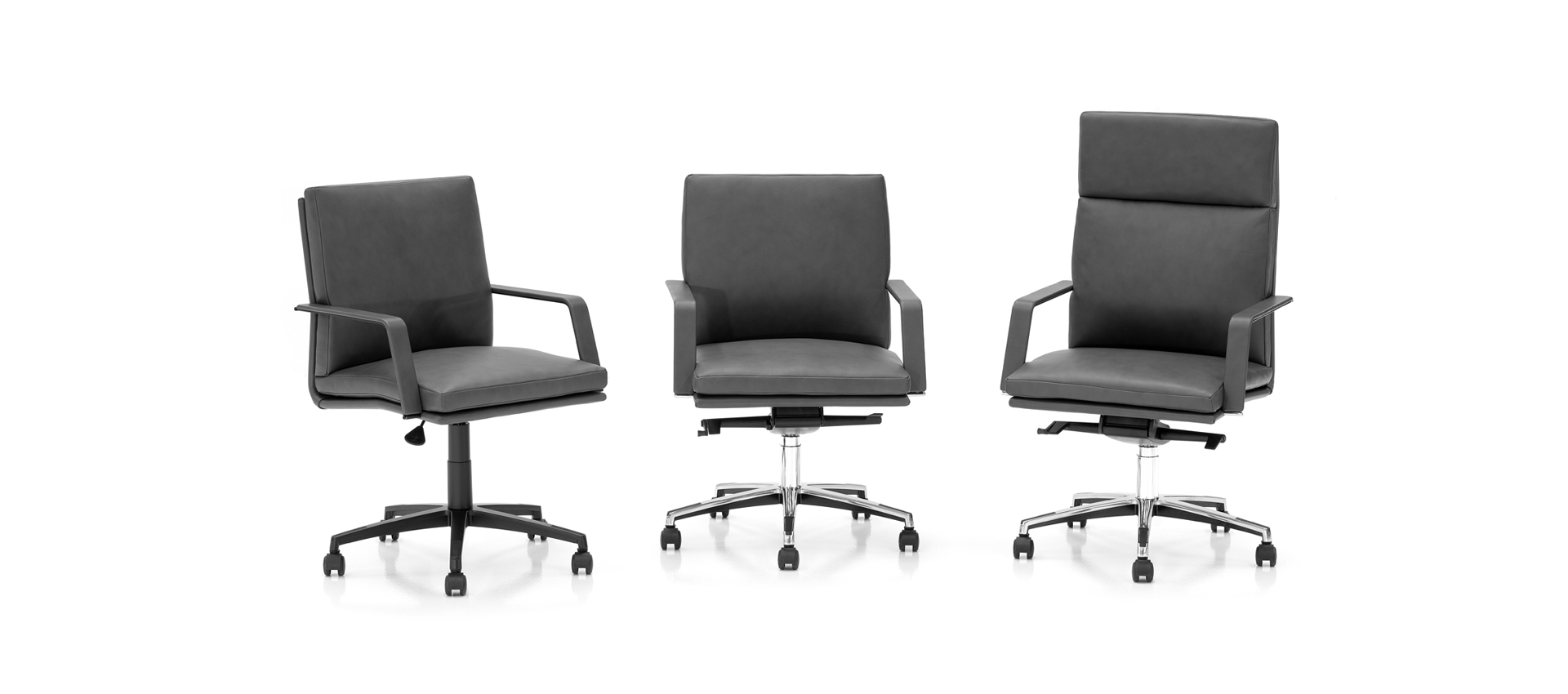 Swivelling and reclining armchair with frame and cushions in soft leather. Chromed arms, with upper part in leather. Base in polished or black lacquered aluminium.