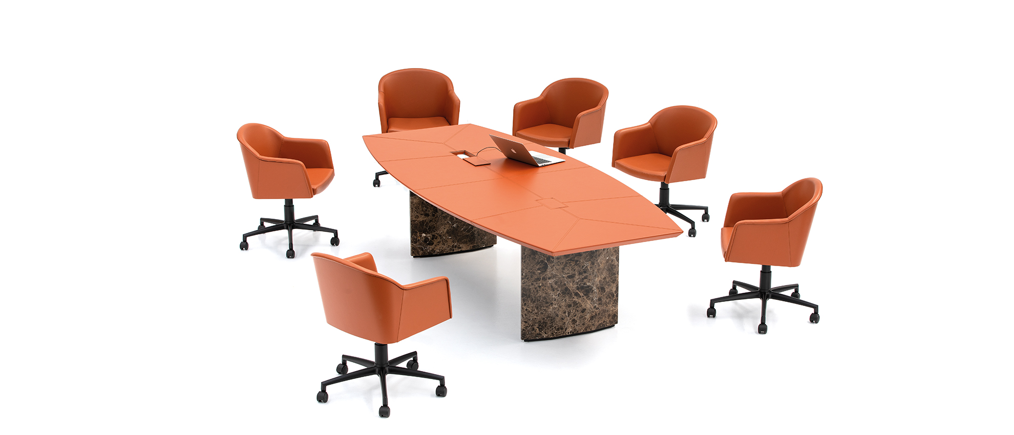 Butaca con estructura en madera estratificada de haya. Material de relleno en espuma de poliuretano de alta densidad. Tapizado de pieles.